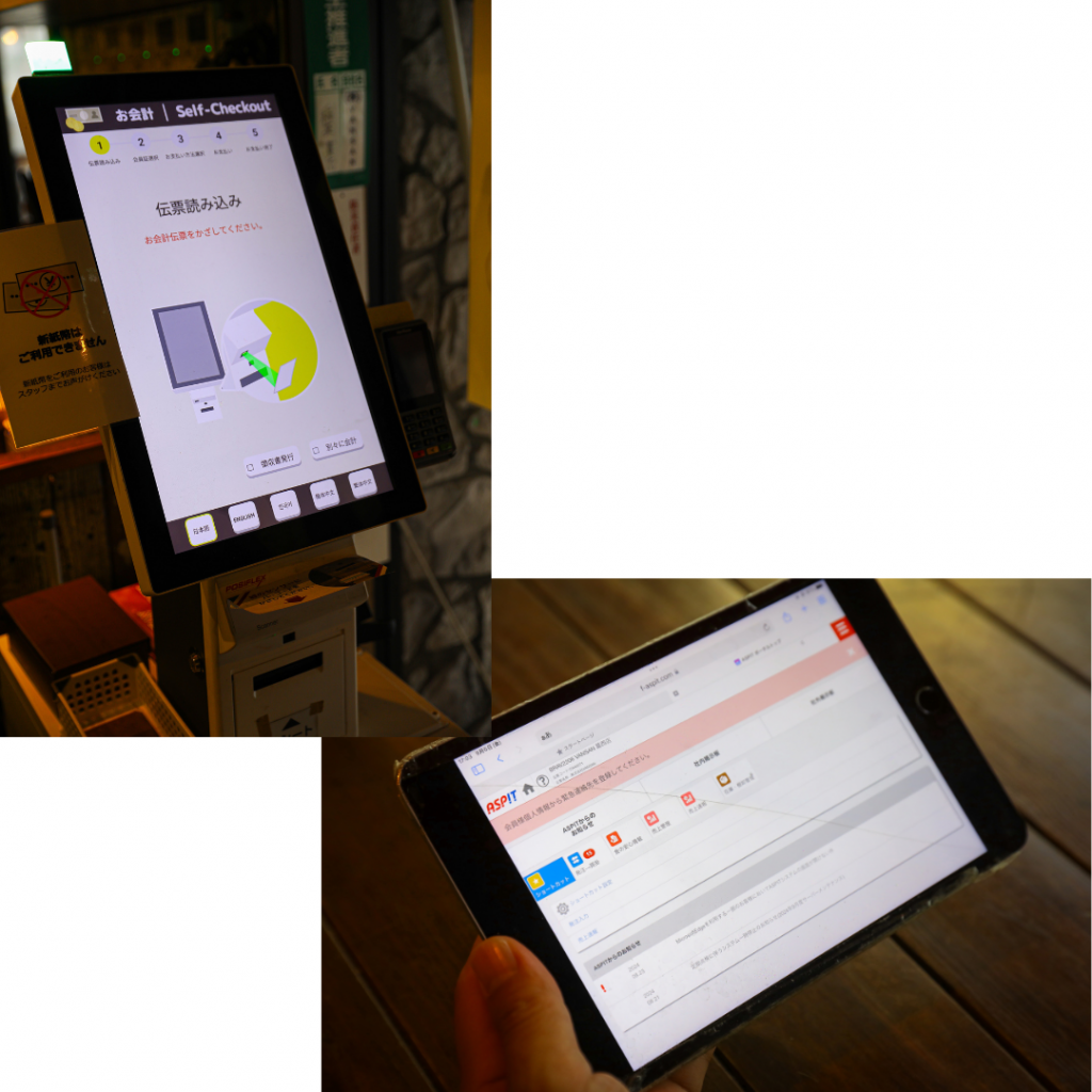 店舗ではカメラやPOSと連動したアプリにより売上、人員配置、席の稼働状態を把握できますし、セルフオーダーや無人レジなども設置しています。全ての業務は可視化されている状況です。