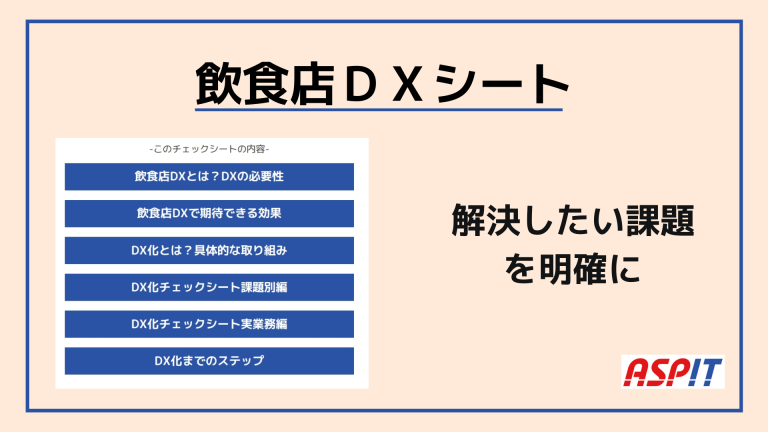 本チェックシートでは飲食店のDX化に関する主要なポイントをご紹介します。自社がDX化で解決したい課題…